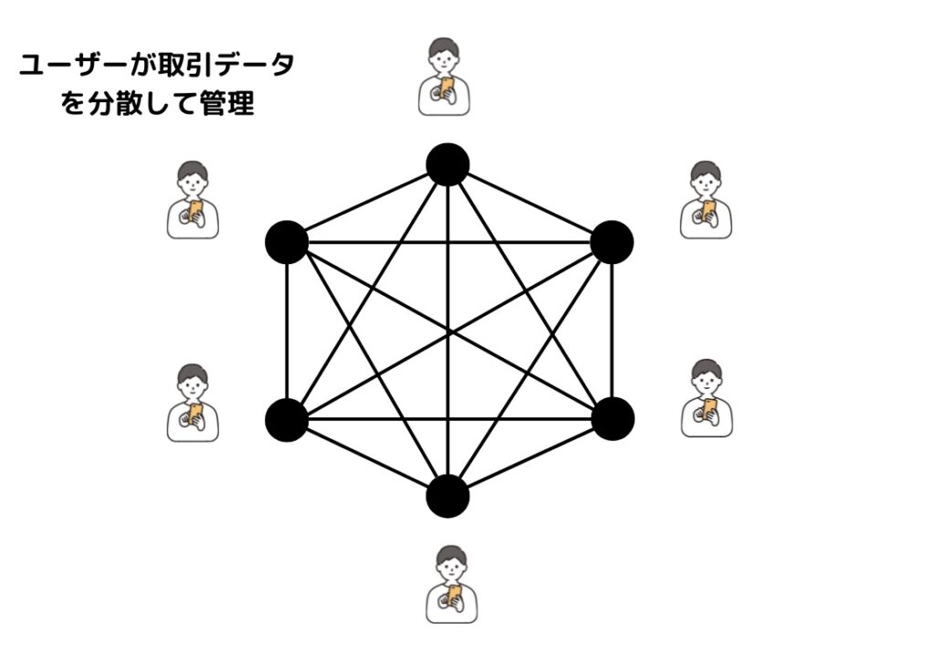 ブロックチェーンという技術を使って、ユーザーが取引データを分散して管理する仕組みになっています。