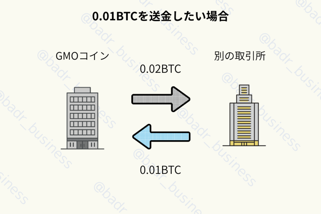 もし、別の取引所に0.01BTCを送りたい場合は、以下の手順を踏まなければいけません。
